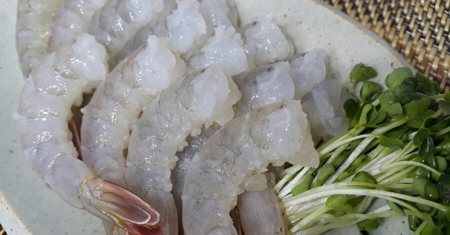 국산 활새우는 냉동 새우에 비해 더 고소하고 식감이 쫄깃하여