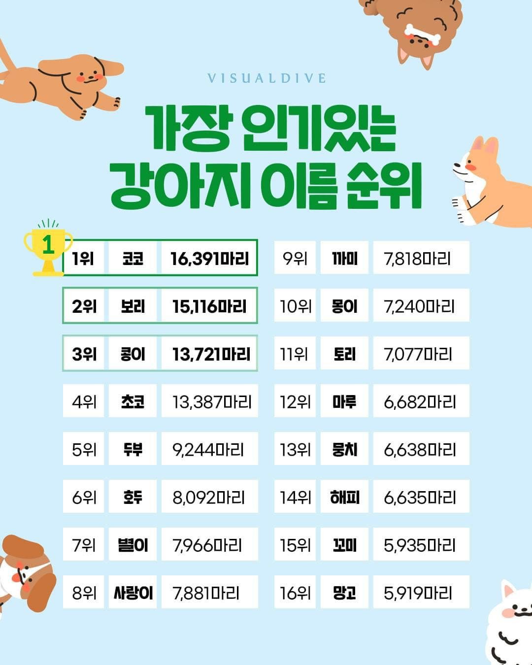 강아지 인기 순위 (우리나라 반려견 품종 순위)