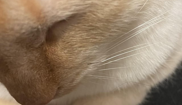 고양이의 수염 역시 시력을 보조하는 역할을 하며, 이 때문에 고양이 수염은 일반적인 털보다 더 두껍고 뿌리가 깊게 위치하고 있으며 주변에 많은 신경이 지나가고 있답니다.