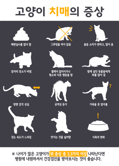 이처럼 고양이도 나이가 들며 노화됨에 따라 조금씩 평소와는 다른 행동을 보이기도 하며,