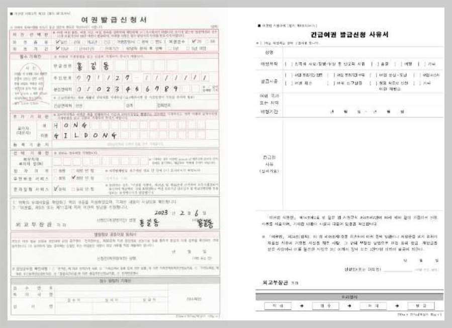 여권민원센터에서 긴급여권 발급 신청서를 작성한 후,