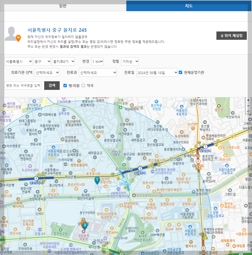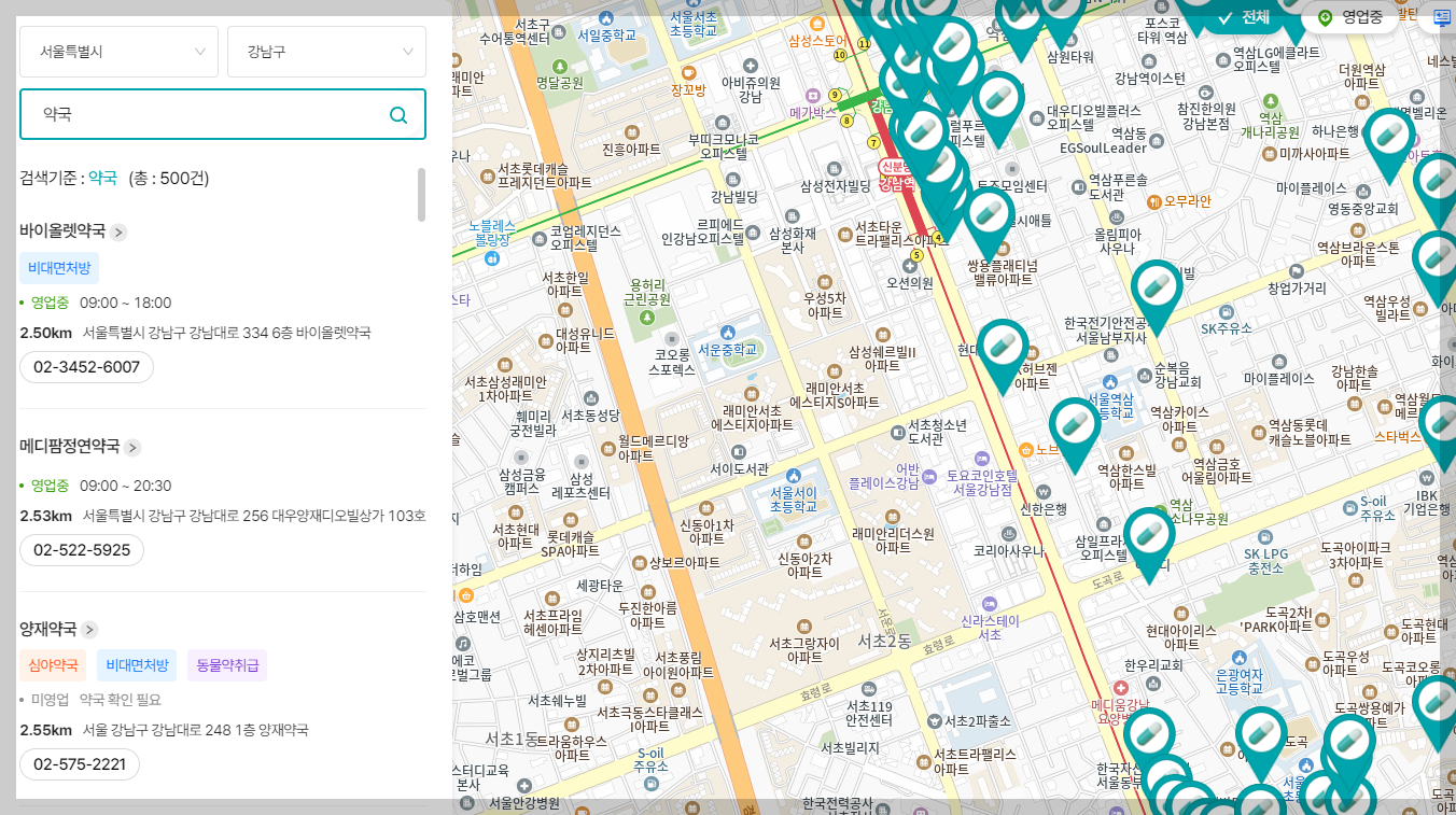 ※ 약국 뿐 아니라 병원 및 응급실도 검색 가능합니다!