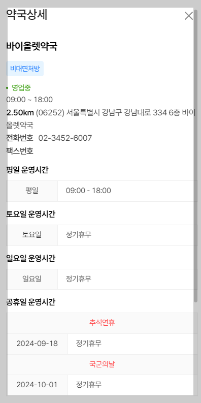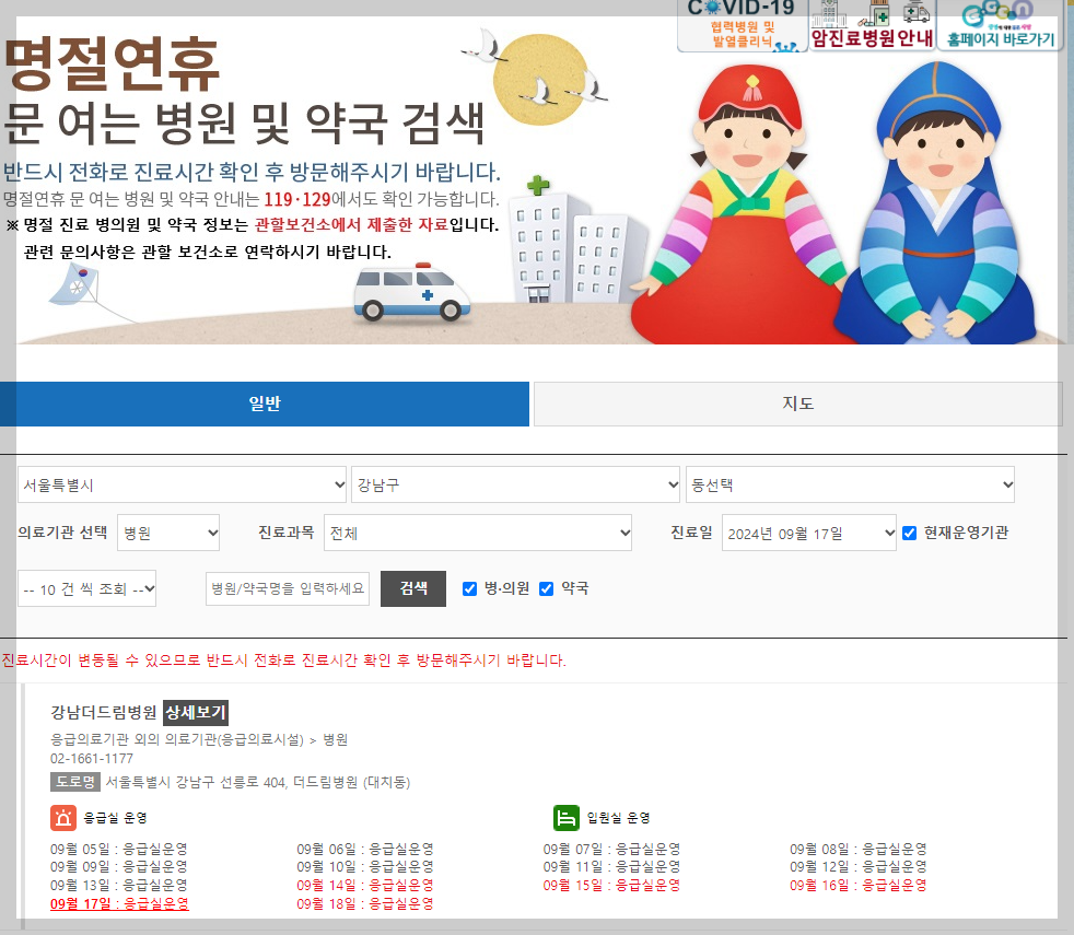 < 공휴일 문여는 병·의원 및 약국 검색 >