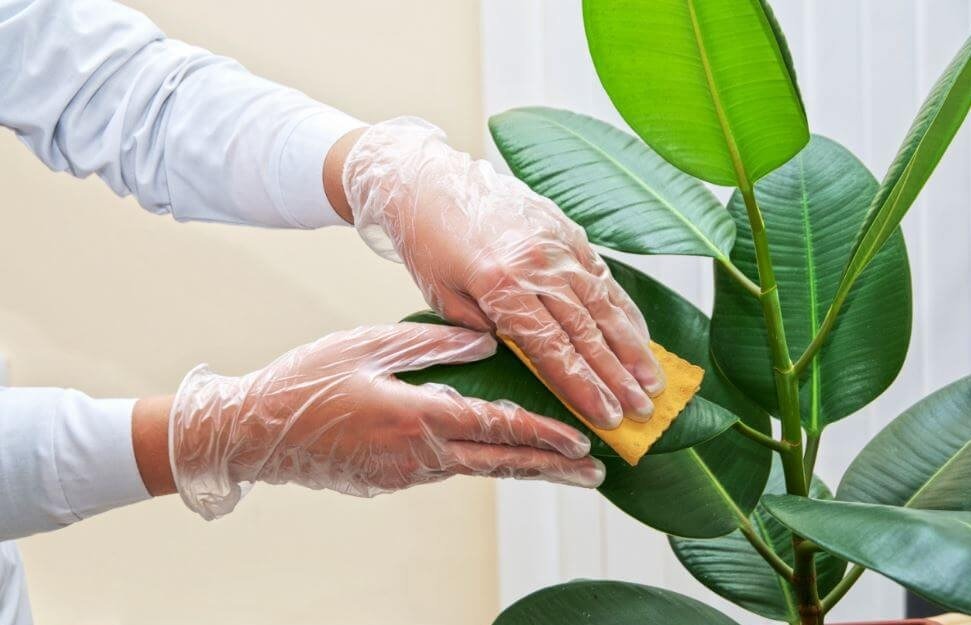 잎이 떨어지지 않도록 닦아주시고 소주는 조금만 뿌려도 잘 닦이니 과하게 뿌리지 않도록 해주세요.