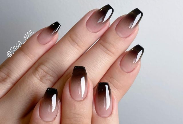 손톱 끝에서부터 뿌리 부분까지 점점 옅어지게끔 그라데이션 효과를 주어 바르는 네일입니다.