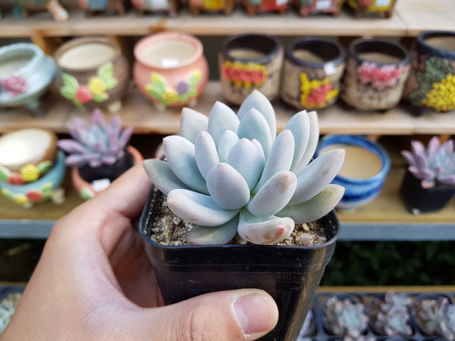 가능하면 잎에 물이 직접 닿지 않도록 다육이 주변 흙에만 물을 주시고 물이 묻었다면 조심스레 닦아주시는 것이 좋습니다.