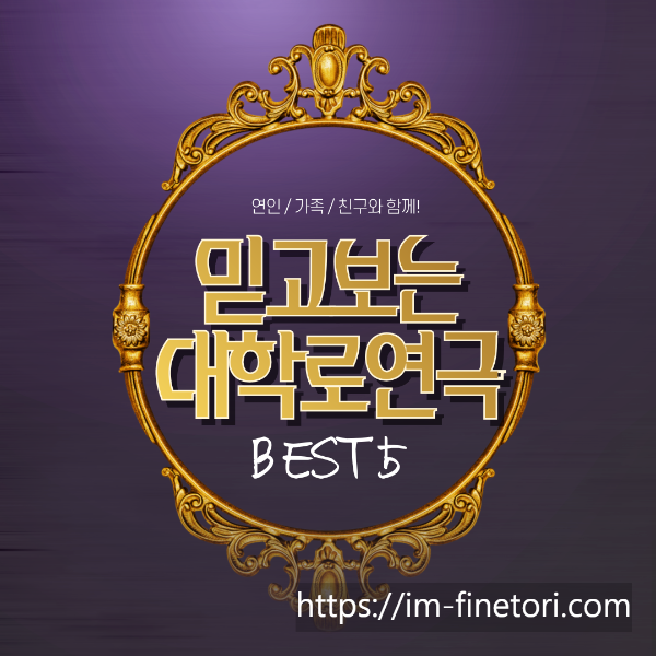 오늘은 대학로 연극 중에서도 꾸준히 인기가 좋아 실패 확률이 없는 BEST 5!