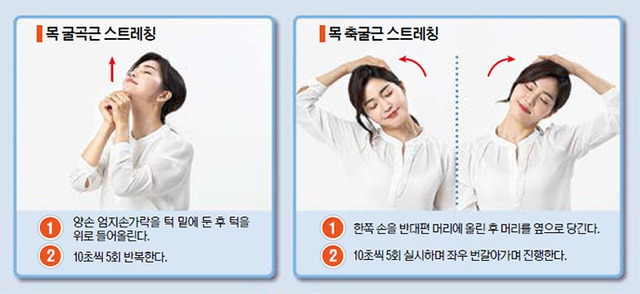 평소 스트레칭으로 목과 어깨 사이를 늘려주시고,