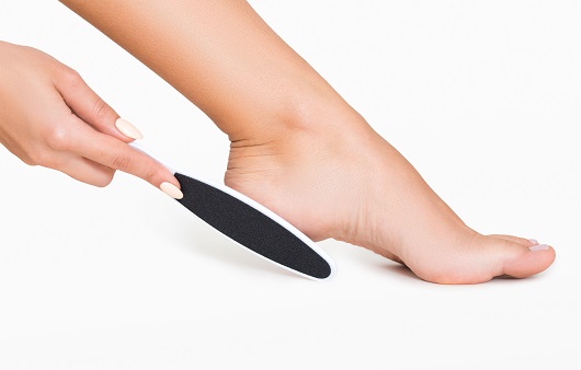발 전용 각질 제거기(버퍼)를 이용해 부드럽게 문질러주거나, 스크럽 제품으로 마사지한 후 각질을 제거하는 방법이 좋습니다. 버퍼를 사용할 때는 발이 마른 상태에서 슬슬 밀어야 하는데요, 그 이유는 발을 물에 불린 상태에서 버퍼를 사용하면 죽은 세포뿐만 아니라 정상 세포가 뒤엉켜 떨어져 나오게 됩니다.