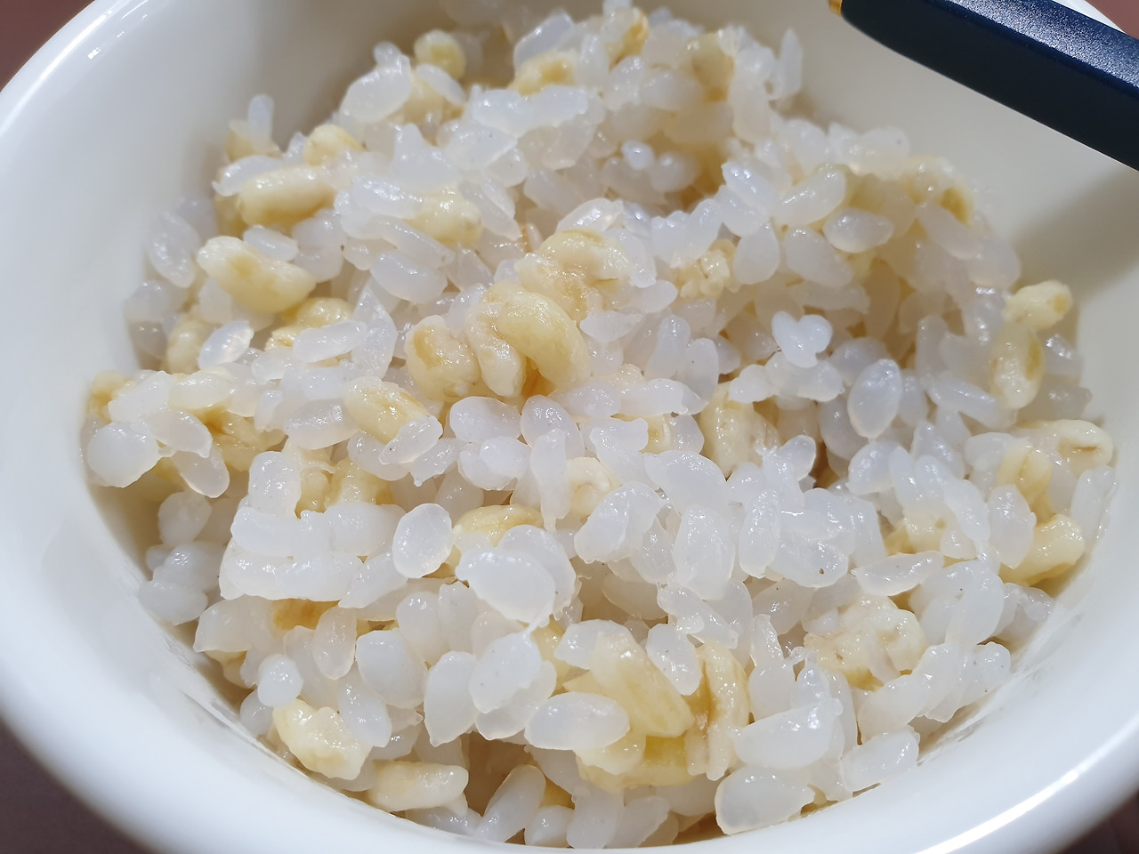 백미를 조금 섞는 이유는 밥의 끈적한 성분이 곤약쌀과 다른 곡류들이 따로 놀지 않고 잘 붙을 수 있도록 하기 위해서에요.