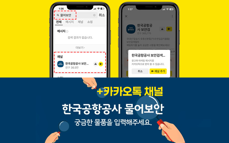 "한국공항공사 보안검색 및 신분증 챗봇" 채널 친구 추가 하시고