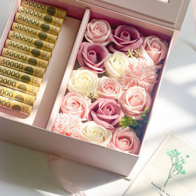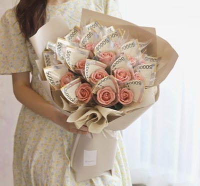 꽃다발 속에 현금으로 꽃을 감싼 현금꽃다발, 케이크 겉부분을 돈으로 감싼 돈케이크, 티슈박스 안에 돈을 티슈 대신 넣어