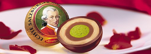 잘츠부르크에서 탄생한 이 초콜릿은 "밀크 초콜릿+꿀로 만든 누가+아몬드, 피스타치오"가 들어간 둥근 모양이며, 겉 포장에 모차르트 얼굴이 그려져있습니다.