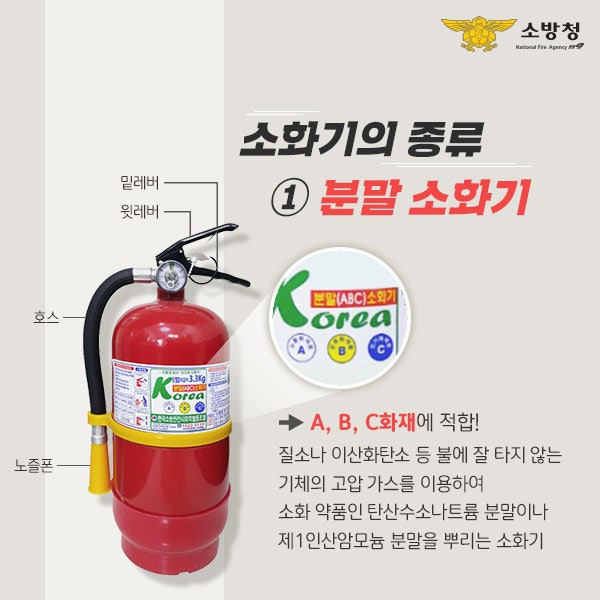 "소화기 종류, 화재 종류, 소화기 설치기준, 소화기 사용법"