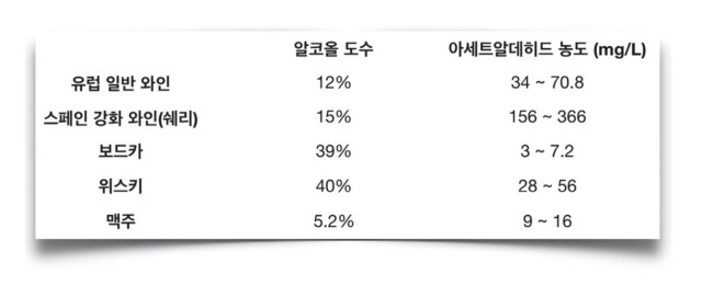 하지만 아세트알데하이드는 발효주에 더 많이 들어있다.