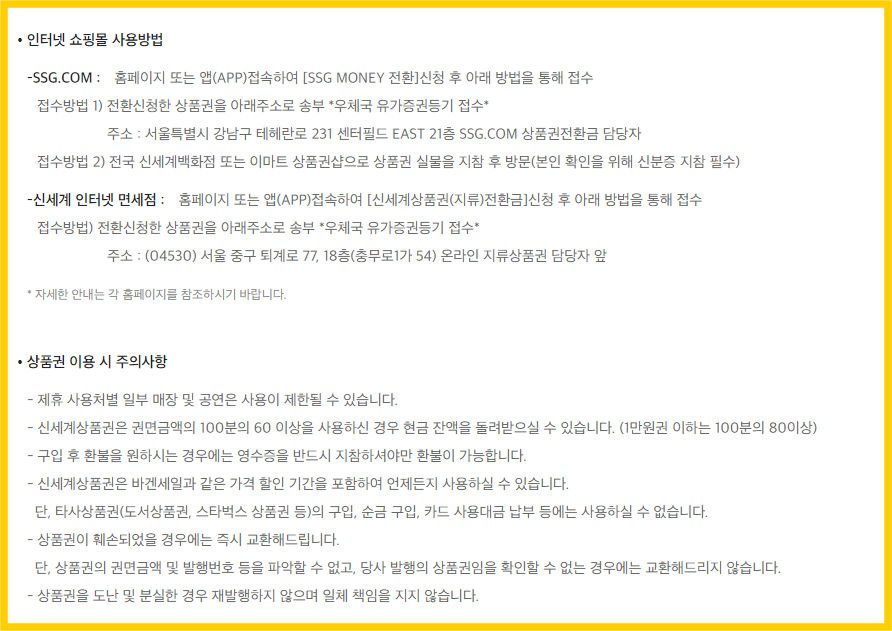 (기프티쇼의 경우, 신세계백화점 상품권샵에서만 가능)