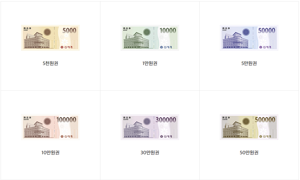 < 신세계백화점 상품권 권종 >