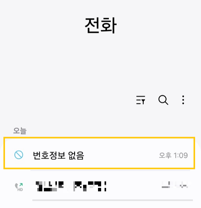 3. 단점-무슨 번호로 전화가 왔었는지는 표시가 되지 않음 (통화 내역에 '번호정보없음'으로 표시됨, 아래 사진 참고)
