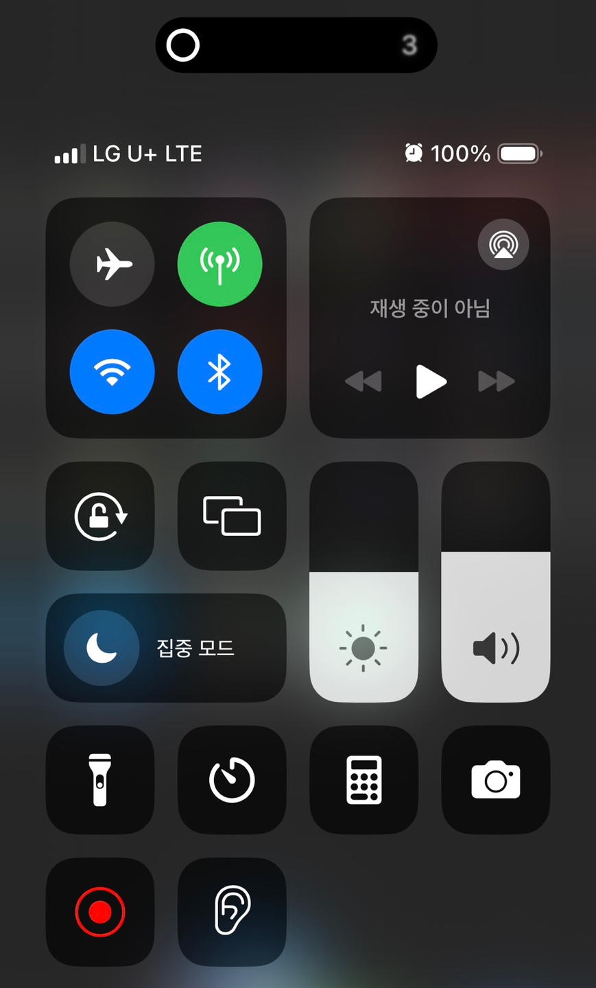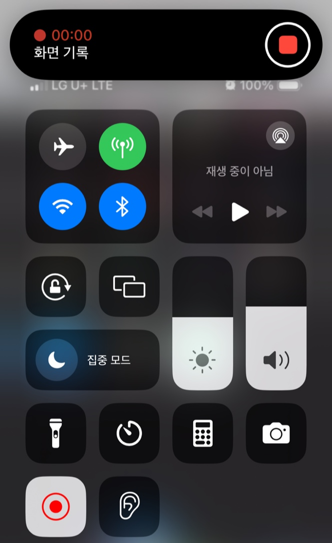 만약 위에서 아래로 스와이프하였을 때, 빨간색 동그라미(녹화 버튼)이 보이지 않는다면,