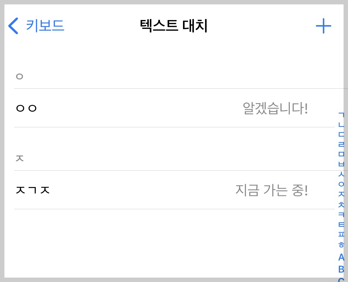 예를 들면 "ㅇㅇ"이렇게 이응 두개만 치면 "알겠습니다"로 바뀔 수 있도록 기능을 입력시키는 것입니다.
