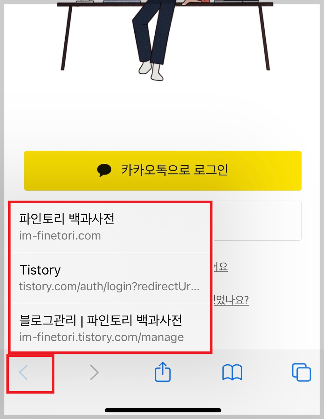 이럴 때 사파리 아래 > 뒤로가기 버튼을 꾹 몇초 누르시면 과거 방문했던 페이지 이력이 뜹니다.