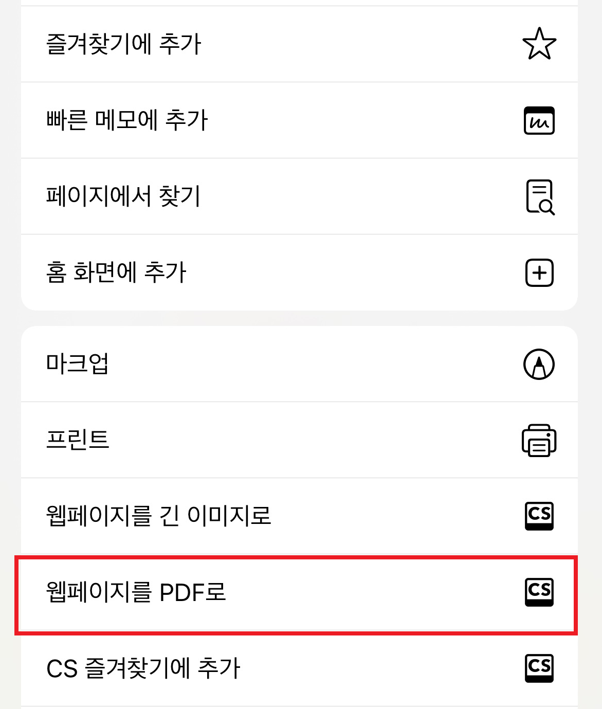 2) 공유버튼을 누르고 "PDF 저장" 을 누릅니다.