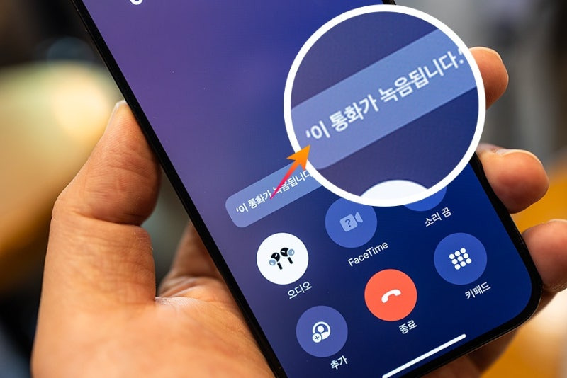 통화 중인 두 사람 모두에게 "이 통화가 녹음됩니다." 라는 음성 안내가 나오며 통화가 녹음되고 있음을 알려줍니다.
