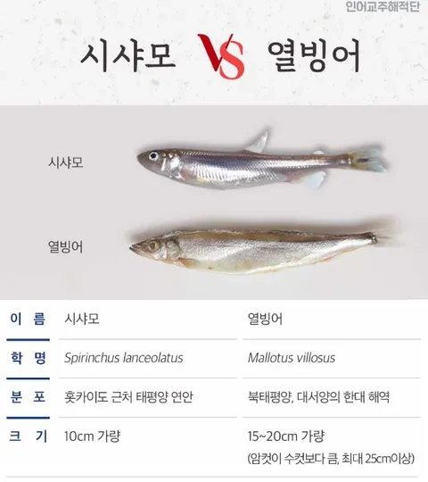 그리고 양미리와 시샤모, 열빙어 차이점에 대해 살펴보아요!