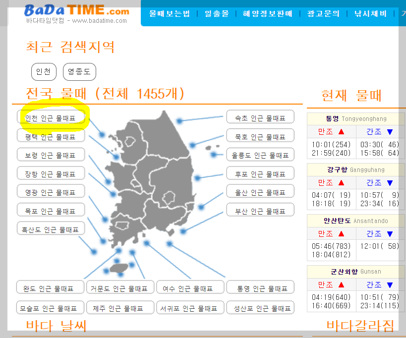 가장 먼저, 바다타임 사이트에서 원하는 지역을 선택해줍니다.