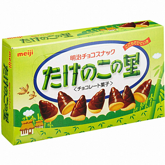 '타케노코노사토'는 '죽순 마을'이라는 뜻으로 포장 겉면에도 대나무가 귀엽게 그려져 있습니다. 속은 비스킷 겉은 초콜릿인 과자로, 비스킷을 초코에 푹 찍은 듯한 형태를 하고 있답니다. 일본인이라면 누구나 먹어본 국민과자 다케노코노사토, 초코송이보다 더 부드럽게 씹히며 또 다른 매력이 있으니 꼭 드셔보시길 바랍니다.