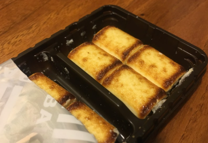 모리가나에서 나온 치즈 브륄레 과자는 치즈 과자 중에 원탑으로 손꼽히는 과자인데요, 겉은 바삭하고 속은 촉촉 극강의 부드러움을 자랑한답니다. 속에 들어있는 부드러운 크림이 짭조름 한 것이 계속 손이 가는 과자에요. 과자 상세표기를 보면 크림치즈, 카망베르 치즈, 마스카포네 치즈가 들어있어 단순 과자라기보다는 고급진 치즈 디저트 같은 느낌이 듭니다.