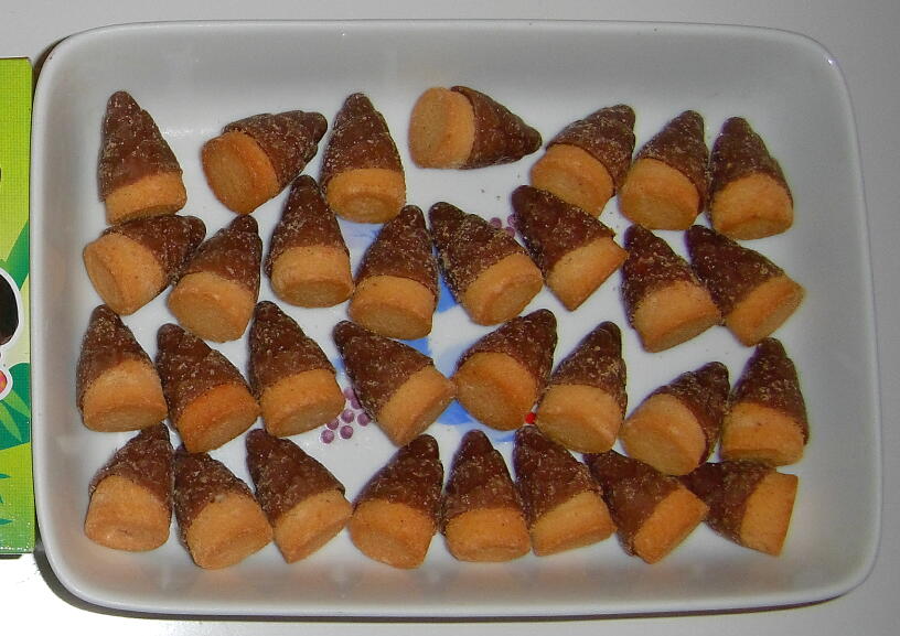 바삭한 페스츄리 파이 안에 초코가 들어간 과자입니다. 바삭바삭 공기반 소리반 맛있는 페스츄리 층이 기분좋게 씹히면서 안에 들어있는 초코가 달콤하게 입안 가득 퍼지면 커피가 생각난답니다.