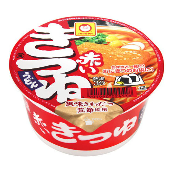마루짱 시리즈 중 유명한 빨간 우동! 날치를 구워 말린 것과 다시마로 만든 국물이 조화롭게 잘 어우러져 맛이 좋습니다.