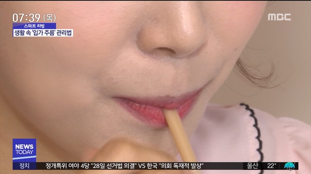 평소 입가에 수분크림, 영양크림을 충분히 발라주어 건조하지 않도록 하는 것이 중요합니다.