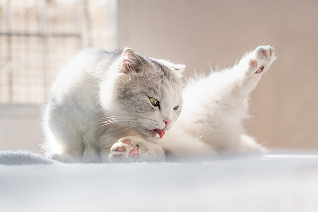 갑자기 그루밍을 하거나 꼬리를 바닥에 세게 탁탁 치는 행위는 기분이 좋지 않다는 뜻이랍니다.