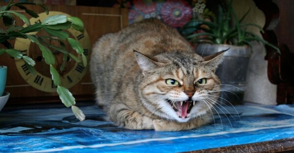 고양이가 매우 예민해진 상태에서 이런 모습을 보일 수 있답니다.