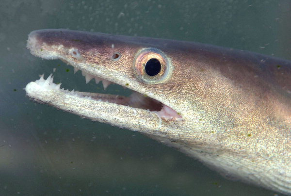 바다 장어 중 하나인 갯장어는 경상도에서 주로 볼 수 있습니다. 이빨이 날카롭고 잘 무는 것이 '개'를 연상한다고 하여 갯장어라는 이름이 붙여졌다고 합니다. 성질이 포악하여 뭐든 눈에 보이는 것이면 물려고 하며, 일본어로 '하모'도 '물다의 일본말인 '하무'에서 유래되었다고 합니다. 길이는 보통 1m 내외이며, 2m 내외까지도 되는 긴 장어에 속합니다. 갯장어도 뱀장어, 붕장어와 생김새가 매우 달라 구별이 쉽습니다.