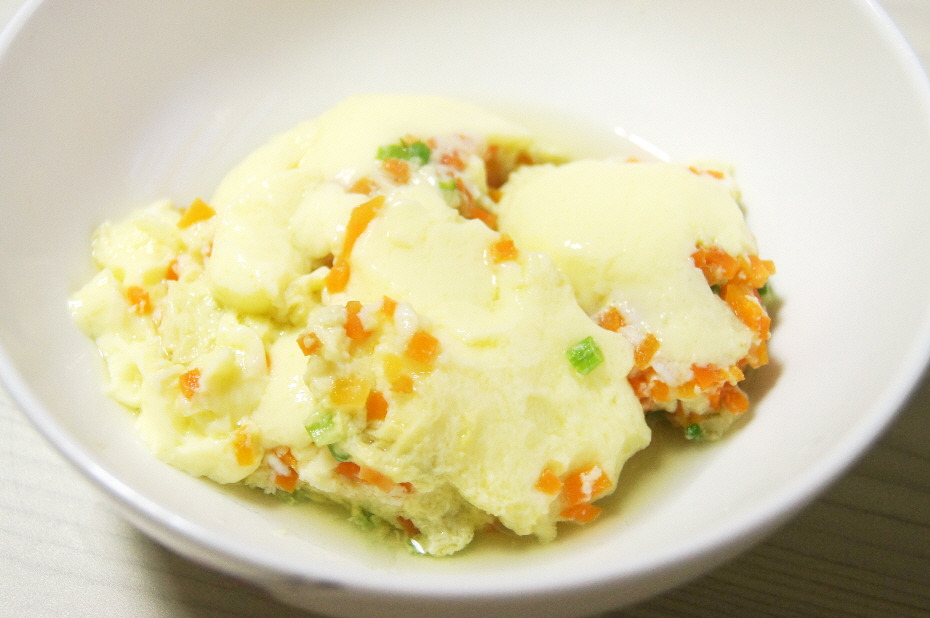 재료: 내열그릇, 큰 계란(특란) 4개, 물 300ml, 야채 집에 있는 재료(고추, 쪽파/대파, 양파, 당근 등), 소금 2t, (참치액 0.5 or 쯔유 2큰술), 선택사항: 자투리 햄, 후추, 맛술 2큰술, 참기름 1큰술