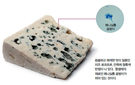 숙성된 후 코를 자극하는 푸른곰팡이 특유의 냄새가 특징이며, 다소 딱딱하고 버터와 유사한 모양으로 맛은 짠 맛이 납니다.