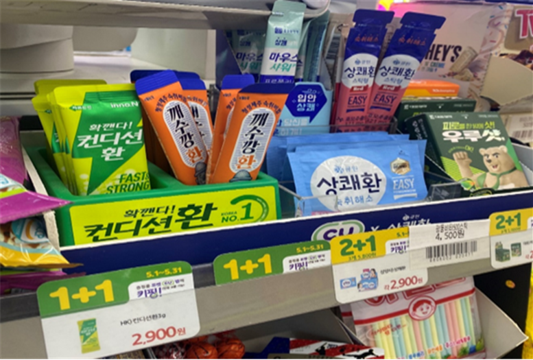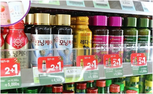 편의점에서 판매하는 숙취해소제는 건강기능식품 및 의약품이 아니며 숙취에 도움이 되는 성분 함량이 낮은 편입니다.