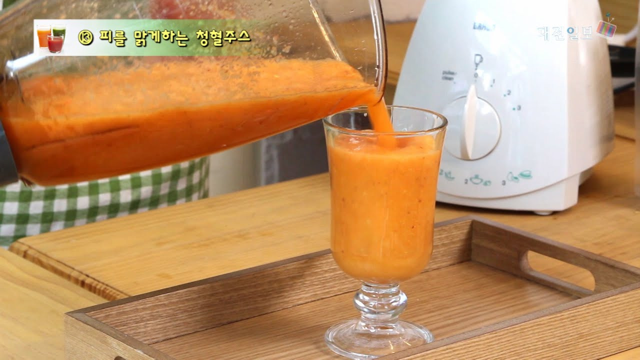 생소한 듯 하지만 우리나라 마트, 시장 등에서 꽤 많이 팔고 있는 "콜라비". 콜라비와 감귤을 활용한 주스인 청혈주스는 말 그대로 피를 맑고 깨끗하게 해주는 주스입니다. 건강 프로그램으로 유명한 '천기누설'에 등장하여 화제가 되었던 청혈주스의 효능은 풍부한 식이섬유로 장 활동을 원활하게 만들어주어 변비, 다이어트에 도움이 될 뿐 아니라 혈관 노폐물을 제거하여 당뇨과 고혈압 등 각종 질병 예방 및 개선에 효과적이에요.