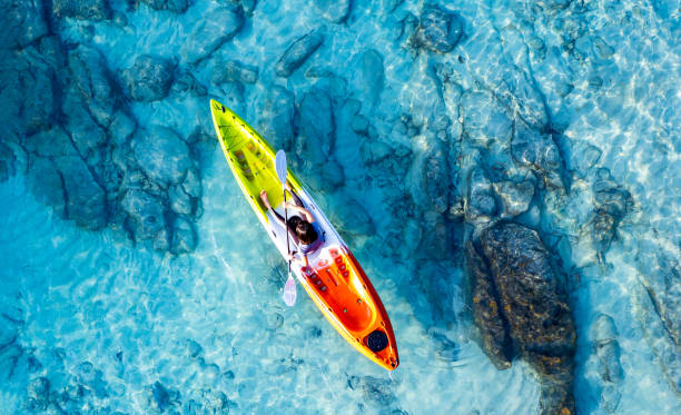 ① 따뜻한 봄날 조용한 호수 위에 떠 있는 카누에 누워 푸른 하늘을 올려다 보고 있는 상상