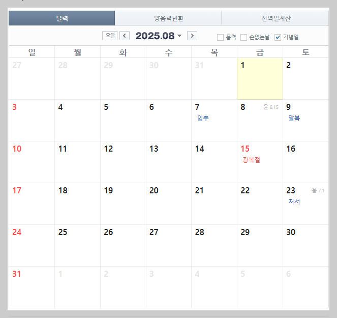 ---2025년 7월 휴일X---