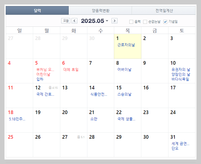 d2025년 공휴일 / 휴일 / 황금연휴 알아보기